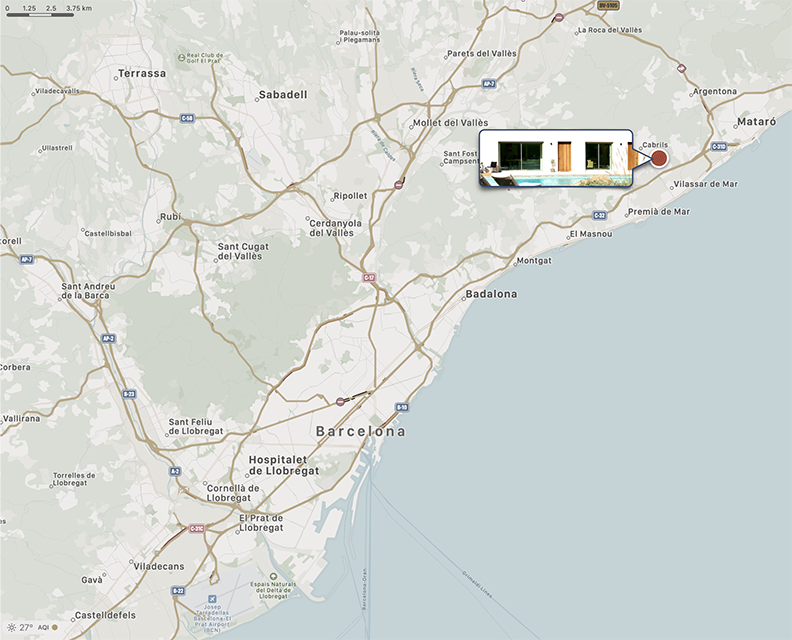Can Maris is around 40 minutes from Barcelona Airport. We highly recommend to arrive by (rental) car, which gives you more freedom to fully explore our surroundings, Barcelona and the Costa Brava.