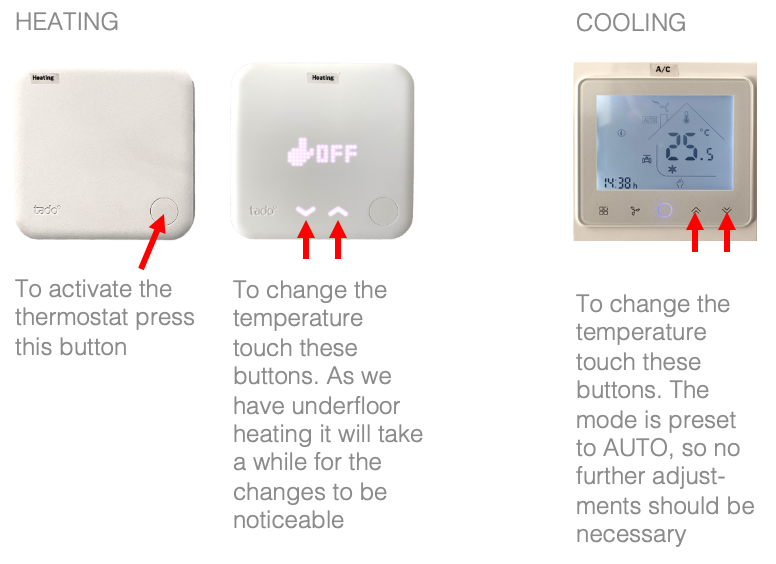 These are the controls for heating and air conditioning. Please note that the air conditioning doesn’t work in winter.
