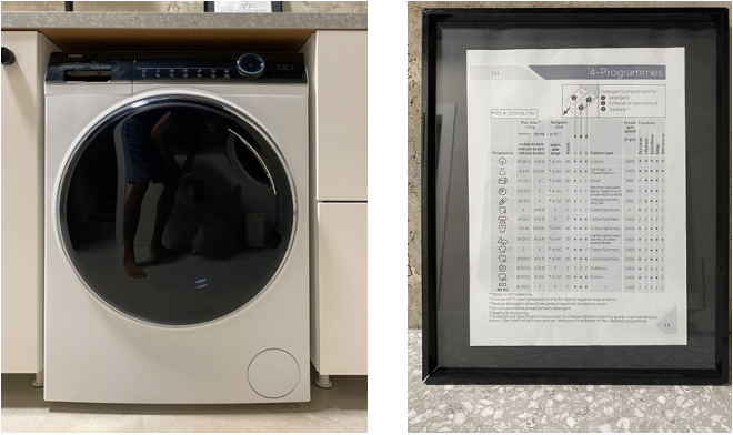 You can of course use the washer/dryer in the storage area. There is a frame with all available programs on the countertop.